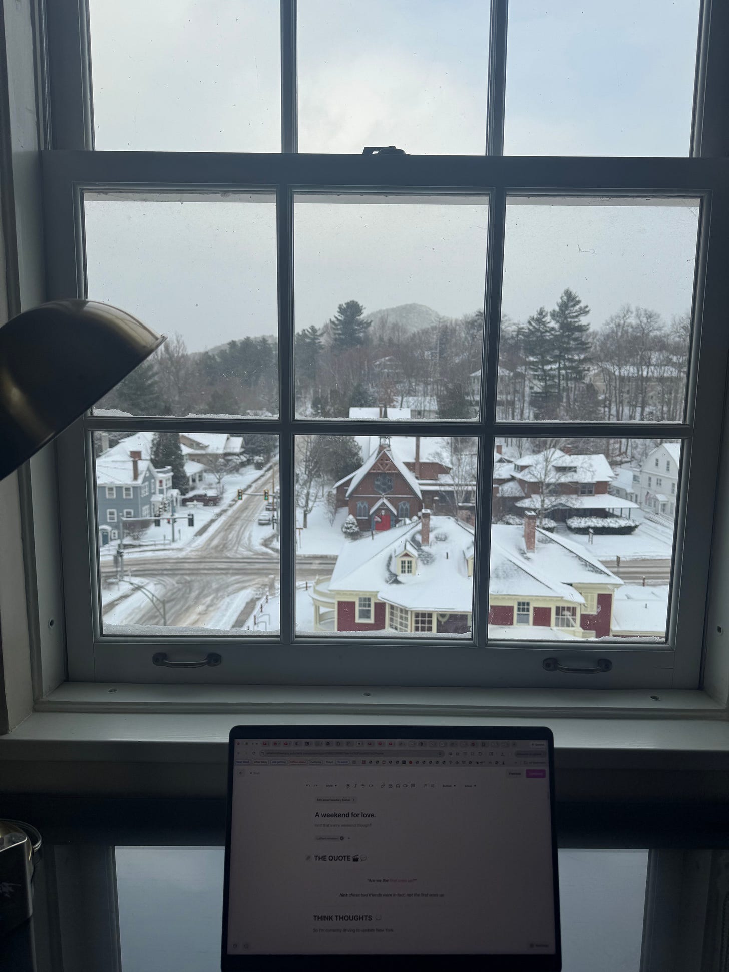 Spoiler alert. The cellular coverage within much of the Adirondack Mountain range is not great. Plus, I was sleepy after an early morning flight. So now Iâm writing from inside the Hotel Saranac in Saranac Lake listening to classic 80âs hits on commerical radio while snowflakes flitter about outside. There are worse places to be.